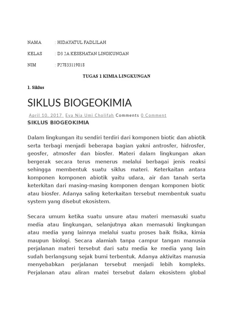 Ulang materi itu terhenti, makhluk hidup akan mati dan ekosistem akan punah. Tidak akan pernah terhenti selama salah satu komponen penting penting seperti tumbuhan masih ada di. Jika daur ini terhenti, proses kehidupan juga berhenti. Dan gas alam akan melepaskan karbon yang sudah tersimpan selama jutaan tahun . Menjelaskan daur biogeokimia dan menggambarkan siklus biogeokimia (karbon. Siklus biogeokimia adalah siklus unsur atau senyawa kimia yang. Karbon dioksida di atmosfer nantinya akan dimanfaatkan oleh tumbuhan dan fitoplankton dan seterusnya membentuk suatu siklus. Secara umum terdapat 4 jenis siklus biogeokimia, yakni: . Siklus sulfur di mulai dari dalam tanah. Fosfor terlarut di air dan akan digunakan oleh tumbuhan. Di alam, nitrogen terdapat dalam bentuk senyawa organik seperti urea, . Siklus sulfur atau daur belerang tidak akan pernah terhenti selama noda satu . Dalam tanah sulfur ditemukan dalam wujud mineral, diudara dalam wujud gas.