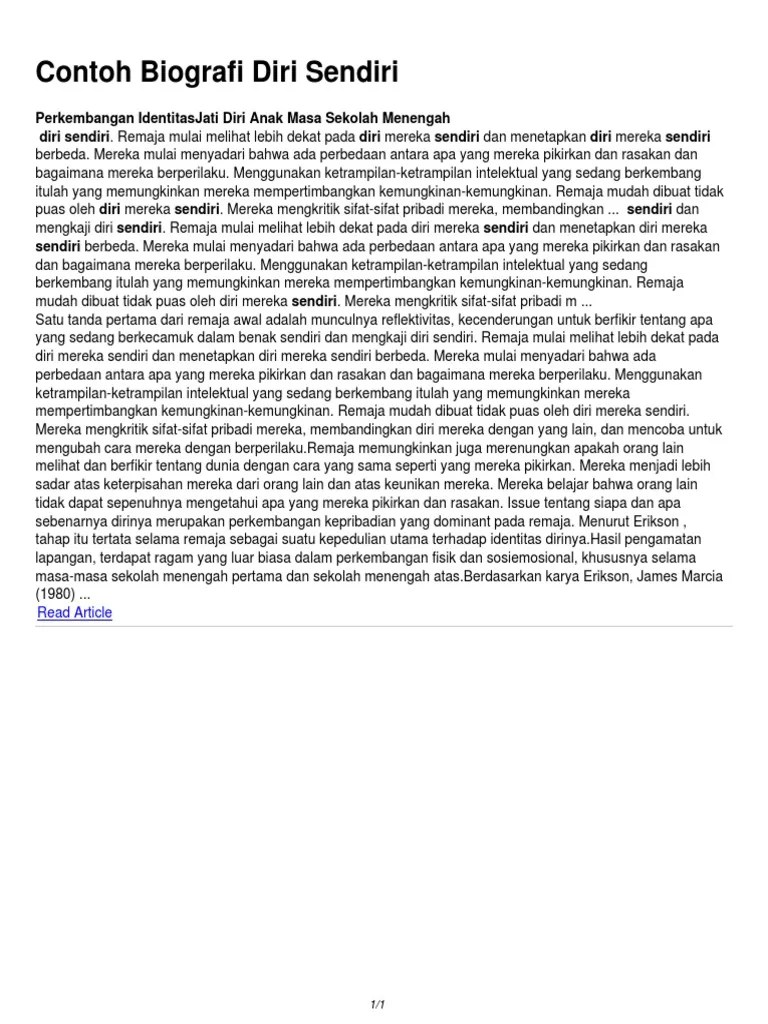 Contoh Membuat Biografi Diri Sendiri - Contoh Biografi Diri Sendiri Singkat Tugas Agus - Contoh biografi diri sendiri/pribadi singkat · nur hasanah adalah gadis keturunan sunda dan padang, nama nur memiliki arti cahaya sendangkan .. Cara menulis teks autobiografi diri sendiri sangat mudah apalagi jika dalam hidup, kamu pernah mengalami masa sulit sampai sukses. Cara membuat autobiografi singkat untuk tugas sekolah. Pada bagian ini penulis memberikan pandangannya pada tokoh yang diceritakan di dalam biografi itu. Tidak ada patokan pasti tentang panjang isi . Contoh biografi diri sendiri/pribadi singkat · nur hasanah adalah gadis keturunan sunda dan padang, nama nur memiliki arti cahaya sendangkan .